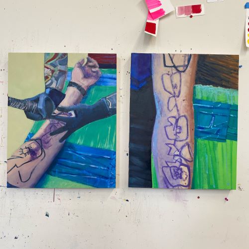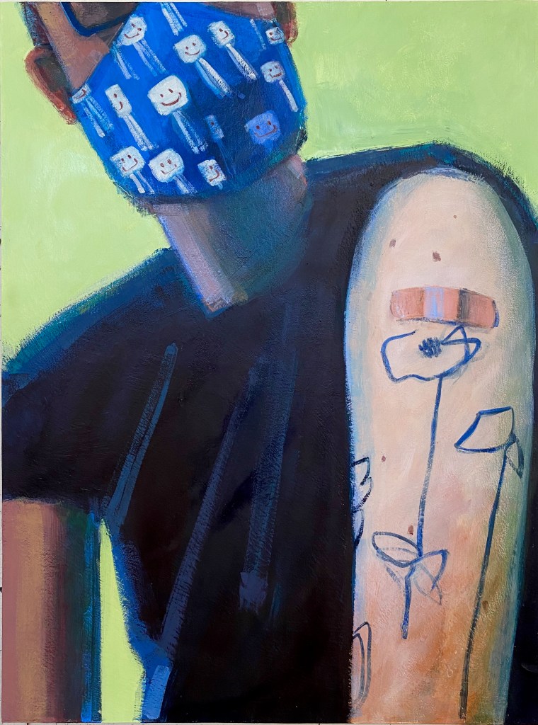 ART IN THE TIME OF COVID — For Hartford painter Matt Best, shown above in self-portraits highlighting the tattoos he says were prompted by the pandemic, the crisis has had a marked effect on his art He feels freer to follow his instincts and not paint in a reliable style. He also believes society as a whole will benefit, that “everything’s going to be restructured in a better way.”