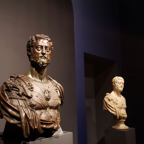 Today, Mari and Maria’s Big Adventure. Two art buddies go to NYC for a press preview of the Metropolitan Museum of Art’s latest blockbuster exhibition, “The Medici: Portraits and Politics, 1512-1570.” It opened to the general public yesterday and will run till Oct. 11. I urge you to take it in if you can, as it really has something for everybody. History buffs will enjoy the high drama – the powerful Medici banking dynasty turned Florence from a Republic to effectively a monarchy, complete with Popes, and used art to cement its power. Art aficionados will be awestruck by the portraits – in paint, in bronze, in marble, on medals, lent from repositories all over the world – works by such heavy hitters as Raphael, Pontormo, Cellini, Bronzino and more.