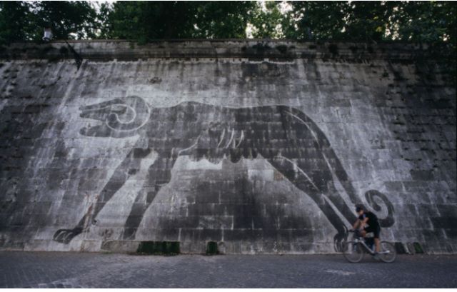 Some of the she wolves, now disappeared from the walls of the Tiber. Jones is interested in transience and in work that “cannot be owned.”.Jones’s first installation in Rome, made by engineering the accumulation of dust on glass shelves.A project in NYC’s Union Square; the digital numbers have been updated to refer to climate change.Looking to the future: Jones hopes to create an installation involving Rome’s Pantheon.