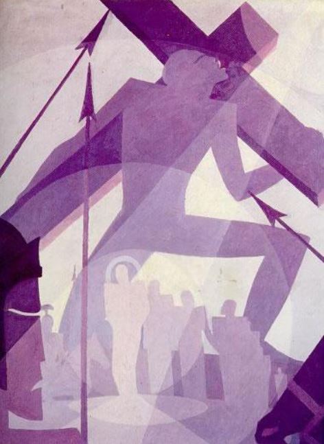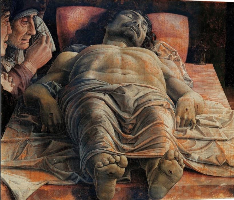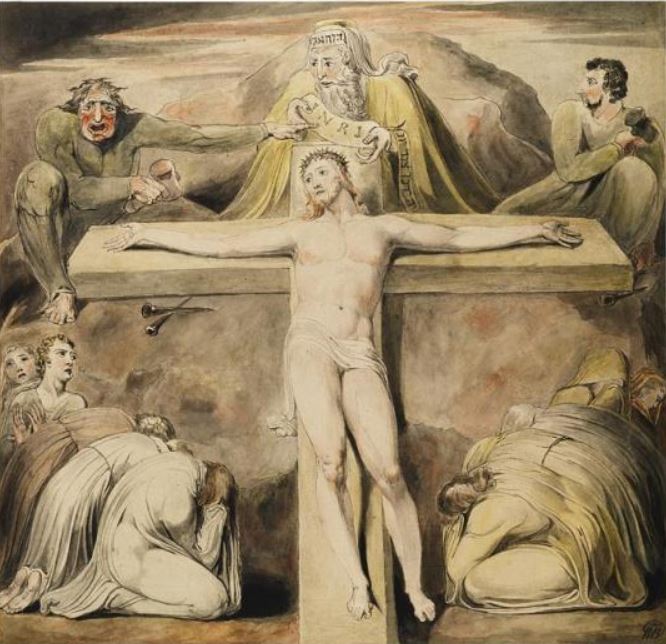 Clockwise from upper left: Aaron Douglas’s The Crucifixion; Andrea Mantegna’s The Dead Christ; Hildegard of Bingen’s vision of the Trinity; St. John of the Cross’s sketch of the Crucifixion; William Blake’s Christ Nailed to the Cross: The Third Hour; Maria Rubio with the Jesus tortilla