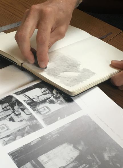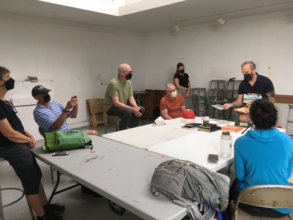 But the very best part of the experience was the time spent drawing. What follows are some audio snapshots from the workshop. The other link is raw footage, for those — especially those in our group — who’d like a record of Aaron’s instruction.