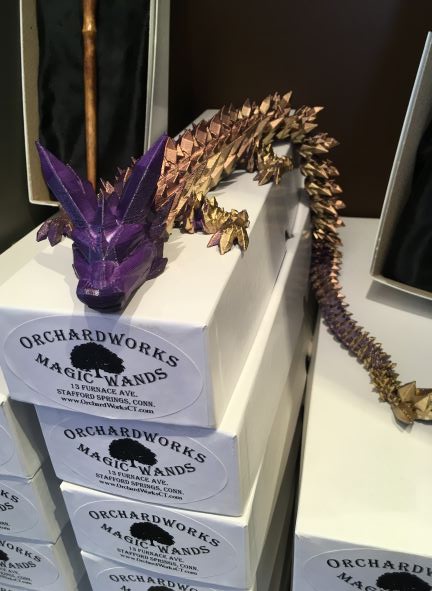 Fast forward to today when Orchard Works Magic Wands is an international business that’s about to have two locations in tiny, out-of-the-way Stafford Springs, and that sells all over the country at loads of comic con style events, with buyers including some way cool celebrities you younger listeners will recognize.