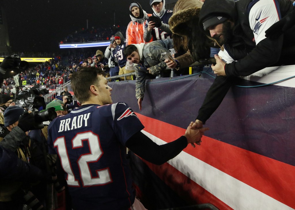 Patriots QB Tom Brady greets fans as he walks off the field after loosing to the Titans 20-13.