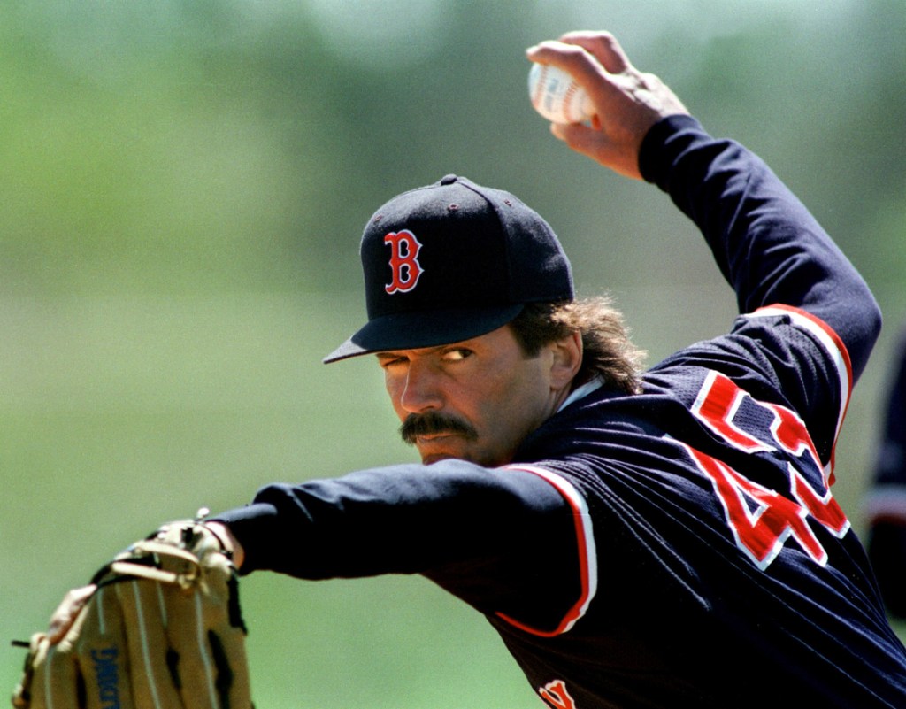 [Providence Journal photo/Bob Breidenbach]02/24/98 — RED SOX SPRING TRAINING — Red Sox pitcher Dennis Eckersley, who announced his retirement December 10, 1998, takes aim while he pitches during batting practice. Dennis was with Boston earlier in his career but was traded to Oakland and found his way back to Boston. He was the oldest player on the 1998 team, at the age of 43.