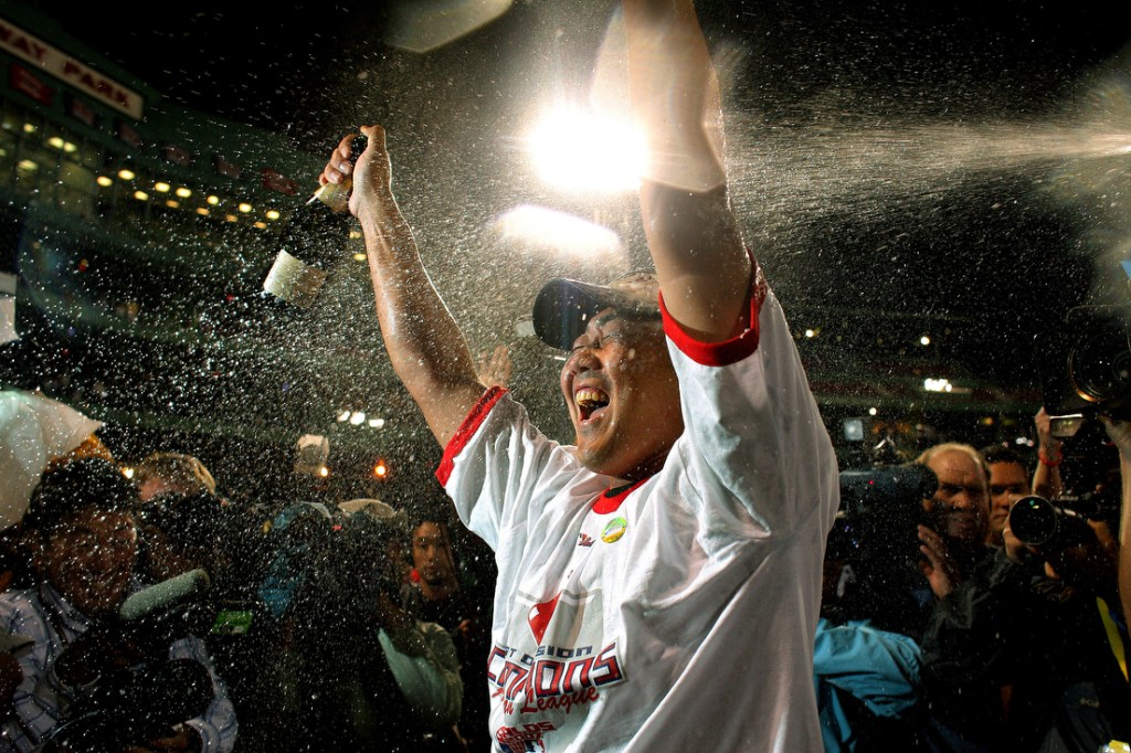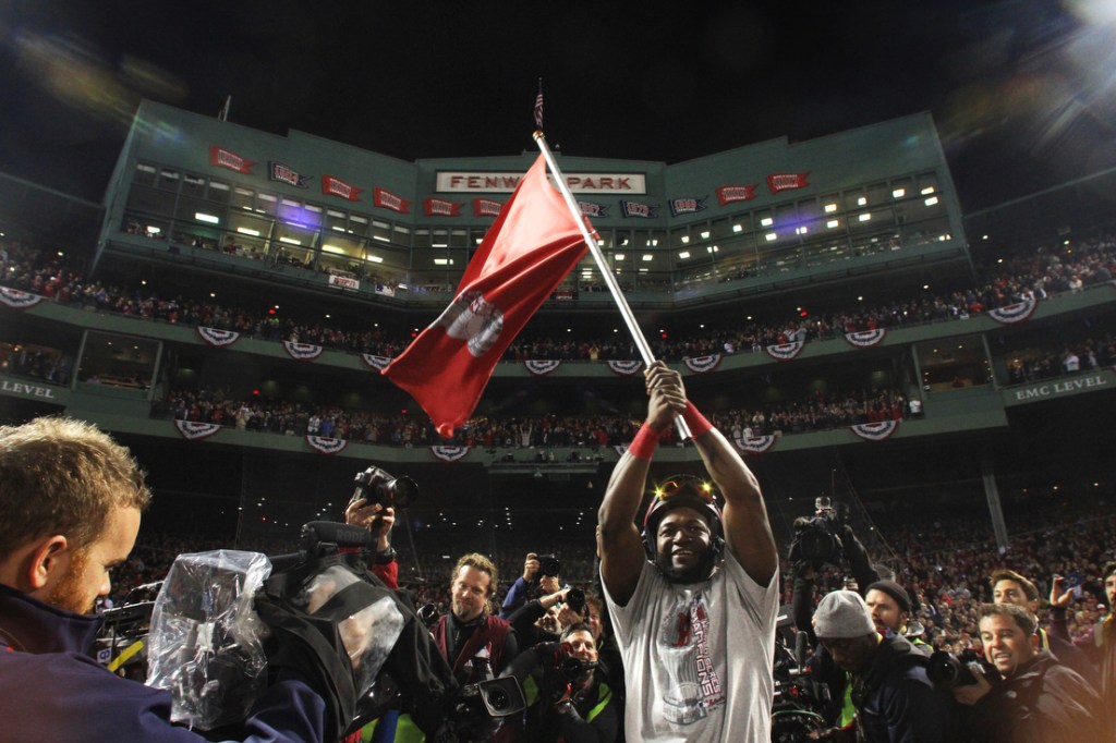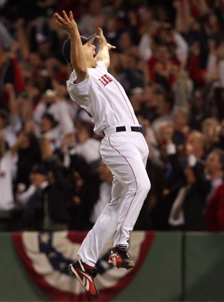 The Boston Red Sox host the Cleveland Indians for Game 7 of the ALCS. The series is tied 3-3. This is part of an 18 photo sieries of the final out showing reaction of pitcher Jonathan Papelbon and continued celebration with teammates afterwards as centerfielder Coco Crisp caught the final out and the Red Sox won 11-2 over the Cleveland Indians to win the American League pennant and advance to the World Series.PROJOPATS