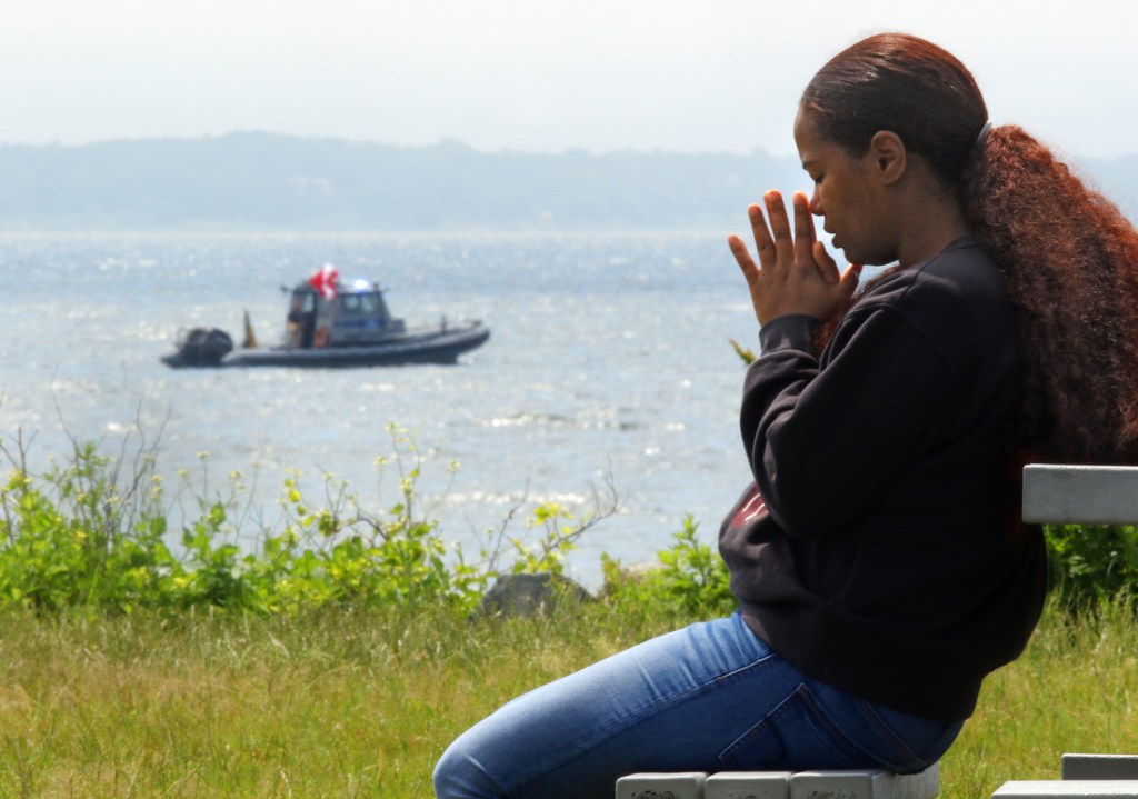 State and local officials continue to search the area around Conimicut Point for 10 year old Yoskarly Martinez (cq,10) who was swept away by strong water currents while playing on the sandbar at Conimicut Park in Warwick yesterday. Valentin Cardona Sanchez, 35, of Central Falls, unrelated to her, drowned while trying to save her and his body has been recovered. Carla Martinez, mother of Yoskarly Martinez (cq,10) prays as officials search the water at Conimicut Point for her body after she drowned at Conimicut Point on Sunday (6/20/2021).