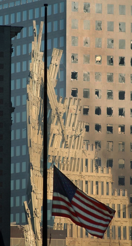 [The Providence Journal/Bob Breidenbach] ORG XMIT: 10041814AFriday May 24, 2013 East Providence, RI The Providence Journal/Bob Breidenbach Former Marine Sgt. Cormick Lynch visits the grave of friend, Eric Valdepenas, at the Gate of Heaven cemetery in East Providence. He served with Eric in Iraq where Eric was killed during the Iraq war and visits Eric’s grave every Memorial Day weekend. He arrives with flowers and new flags, spends time placing them around the gravesite, salutes his friend, says a prayer, and salutes again when he leaves. The Providence Journal/Bob BreidenbachORG XMIT: 09/13/01 — The shell of what is left of The World Trade Center stands in the early morning sunlight as a flag flying at half mast waves quietly in the foreground. The World Trade Center was destroyed from a terrorist attack after two hijacked airliners flew into the twin towers and they crumbled to the ground killing thousands. Photo by Bob BreidenbachORG XMIT: 09/11/01 — THE NEW YORK CITY SKYLINE FILLS WITH SMOKE FROM THE DESTRUCTION OF THE WORLD TRADE CENTER IN A TERRORIST ATTACK. PHOTO IS TAKEN FROM BROOKLYN ATOP A HIGH APARTMENT BUILDING. PHOTO BY BOB BREIDENBACH
