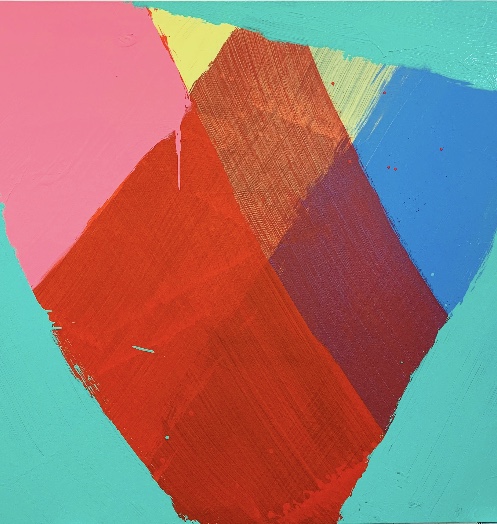 Three Green Triangles, acrylic on canvas, 72″x72″,